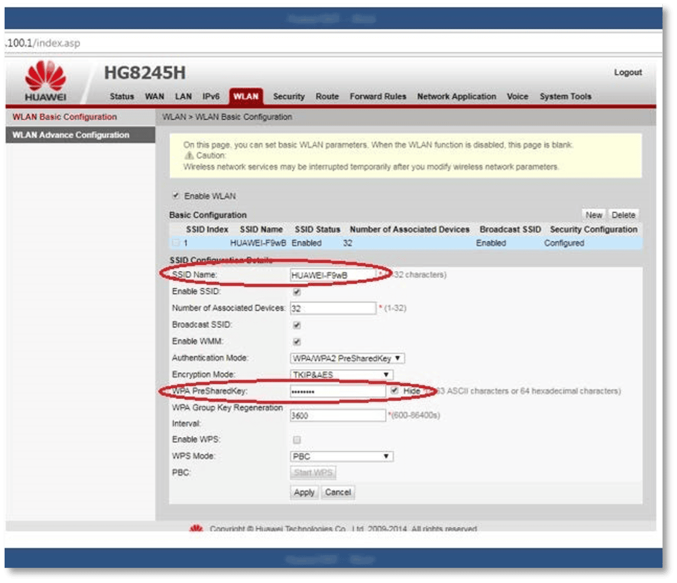 Untuk melihat setting wifi, Pilih tab Network > Wlan Settings > Advanced. SSID name adalah nama WiFi anda. Apabila ingin mengganti password, silahkan ganti bagian pass phrase.