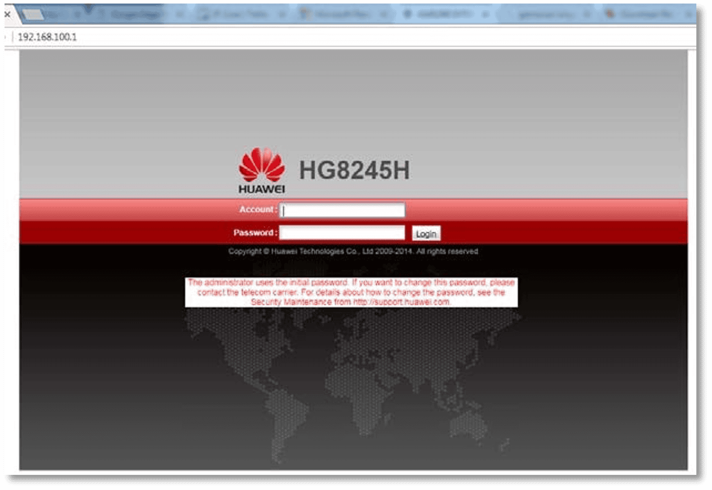 Kemudian akan muncul login dan masukkan username : telecomadmin dan password: admintelecom. Setelah username dan password dimasukan, Root admin