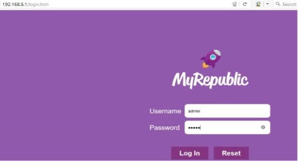 Koneksikan Device cust menggunakan LAN ke PORT LAN 1 di Router Sagecom Kemudian Masukan IP Gateway Router Sagemsom di Browser : 192.168.5.1 dengan user : admin dan pass : admin.
