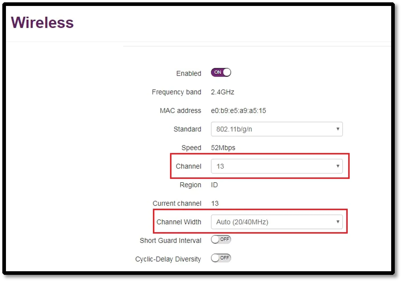 Ganti channel number ke nomor lain, misal ke channel 13. Selain itu, coba besarkan Channel Width WiFi dari 20Mhz ke 40Mhz. Interferensi dapat dilihat dengan aplikasi android WiFi analyzer.
