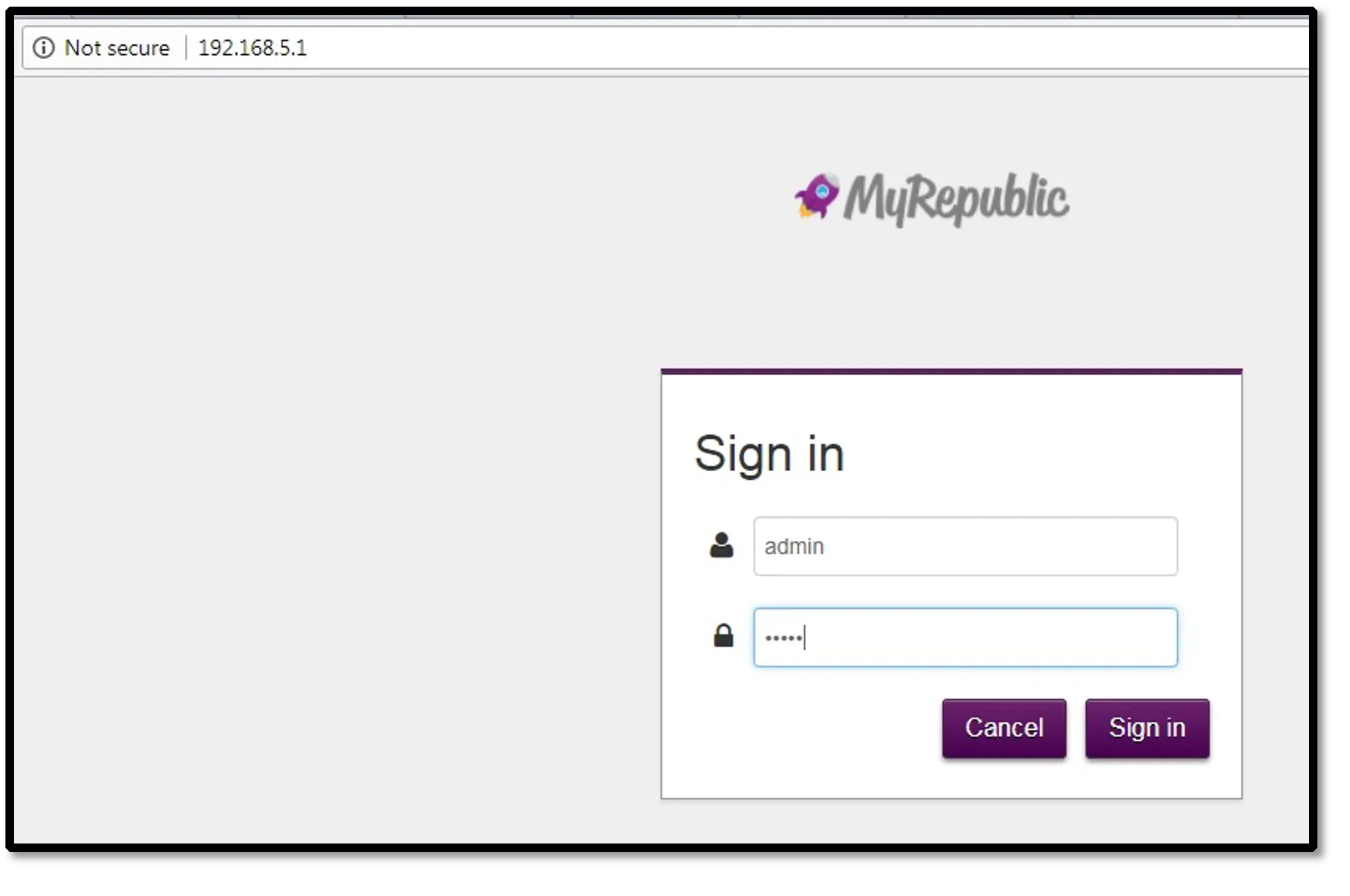 Masukan IP 192.168.5.1 di browser seperti gambar di bawah:
