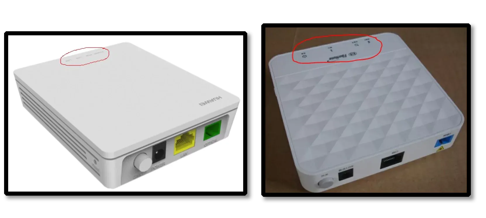 Cek lampu LOS di ONT 1 port, bukan di router WIFI HUB. Apabila lampu LOS menyala merah berarti kabel dari jaringan My Republic ke ONT terputus. Penampakan perangkat ONT 1 port adalah sebagai berikut: