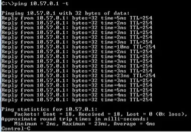 Cek stabilitas ping ke gateway dengan cara melakukan ping dengan tambahan -t. Sebagai berikut:
