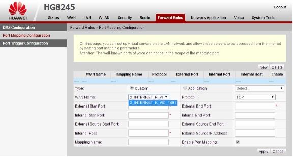 Pilih tab Forward Rules dan masuk ke menu Port Mapping Configuration (Side Pannel) untuk melakukan pengaturan port-forwarding.