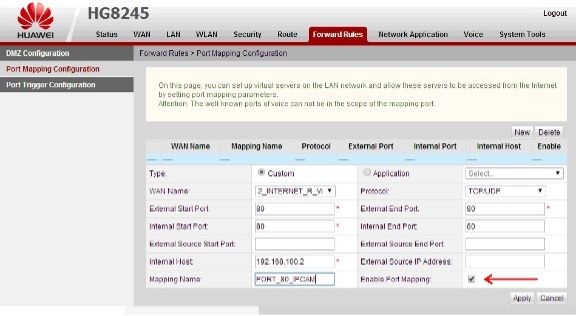 Pada field Mapping Name, silakan isi dengan nama profile forwarding yang akan digunakan, misalnya: PORT_80_IPCAM